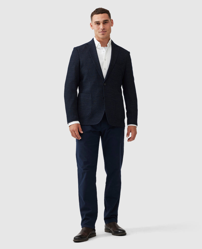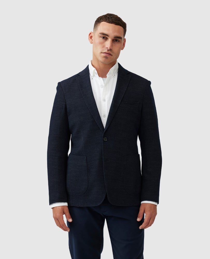 Possibly the most comfortable blazer you'll ever have, a small amount of stretch brings a relaxed feel to this textured wool-cotton jacket. Half lined to take advantage of the comfort of the Italian fabric, the internal seams feature a contrast piping for an elevated finish.