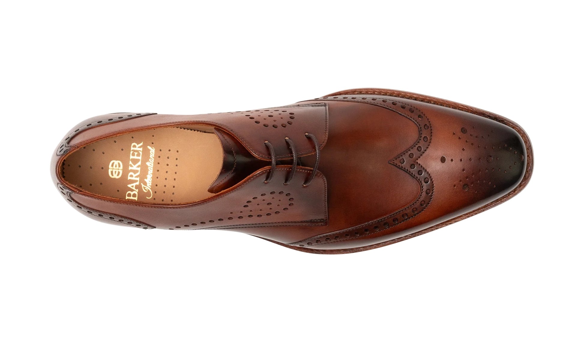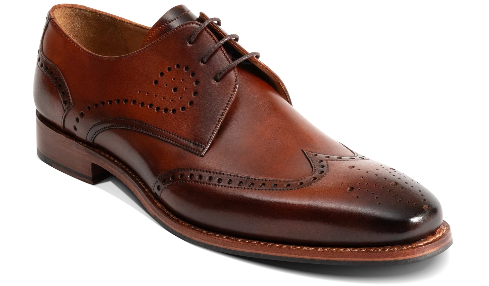 Introducing the George Wing Tip Brogue Derby, a distinguished masterpiece that encapsulates timeless elegance. This shoe pays homage to traditional craftsmanship with its intricate wing tip detailing and meticulously punched brogue patterns, techniques that originated in Scotland and Ireland as functional elements for draining water from shoes. George boasts a hand-brushed finish that emulates the exquisite grain of wood on its leather surface. Its upper leather undergoes a meticulous process, including a light base coat and a brush-applied darker stain, resulting in an antique wooden effect. The uppers are then wax polished to achieve a rich, deep patina. The shoe's classic design ensures that its form and structure endure even with prolonged wear. Its premium Italian leather sole, coupled with a rubber forepart, seamlessly merges durability with the elegant lines of a full leather sole.