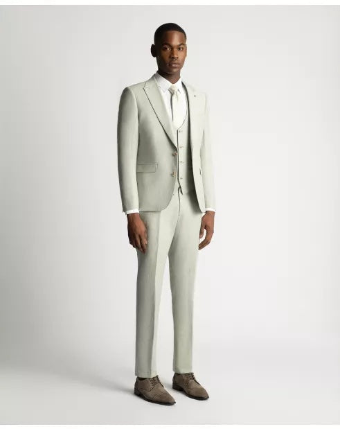 Available in a classic dark blue and a rich olive tone, this slim fit suit jacket is crafted from a breathable linen-blend fabric for a sharp yet lightweight feel. It features a striking peak lapel, a tailored slim silhouette, side flap pockets, and a refined jetted ticket pocket on the chest for a polished finishing touch.
