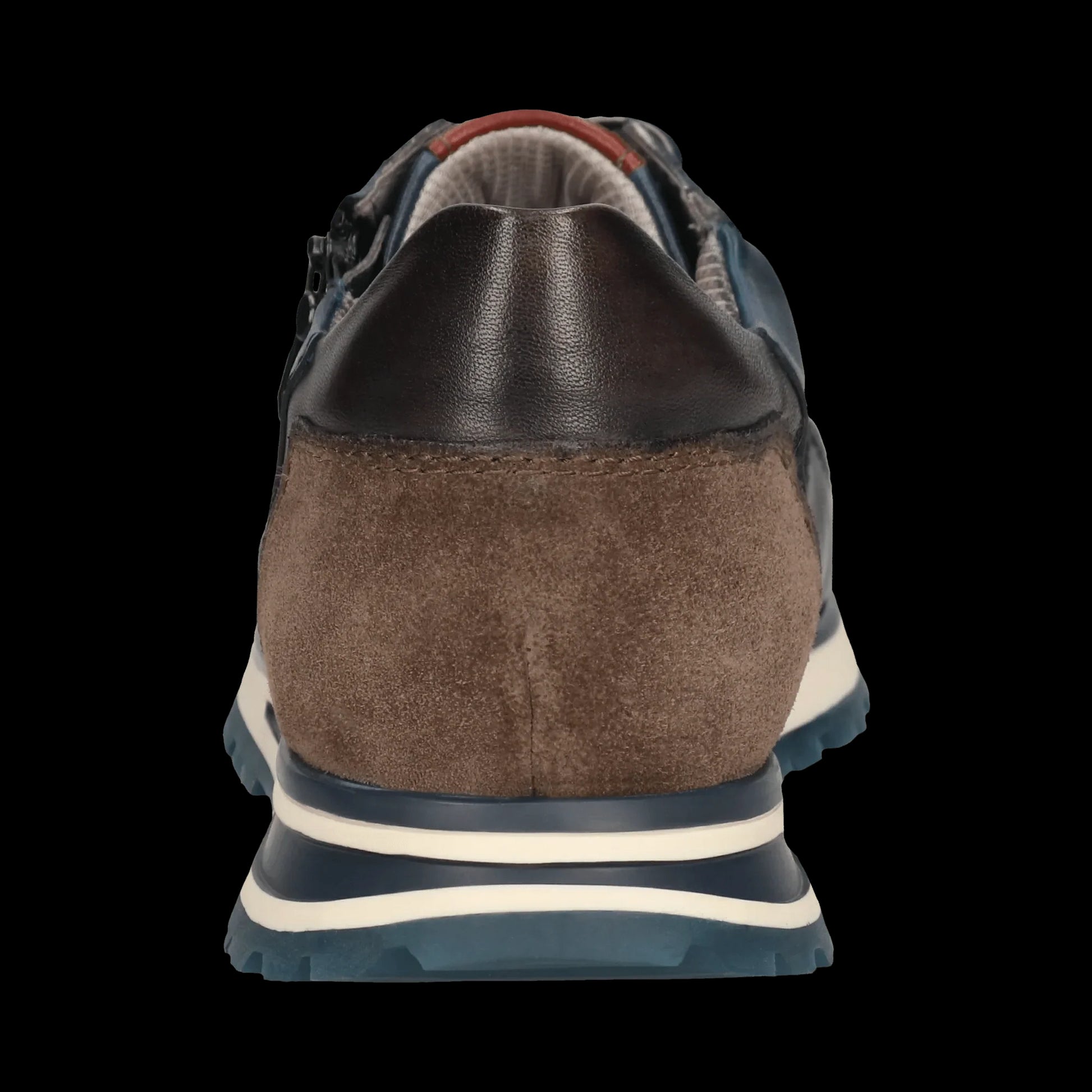 Designed within a modernistic vibe, these leather sneakers feature an attractive colour scheme, in navy, ash blue and brown, and are completed with zipper accessory. Combining looks and comfort with ease, they are innovated with soft fitting insoles that assure a relaxed wearing experience. Match them effortlessly with jeans for a more laid-back ensemble. Durable style and comfort beyond compare!