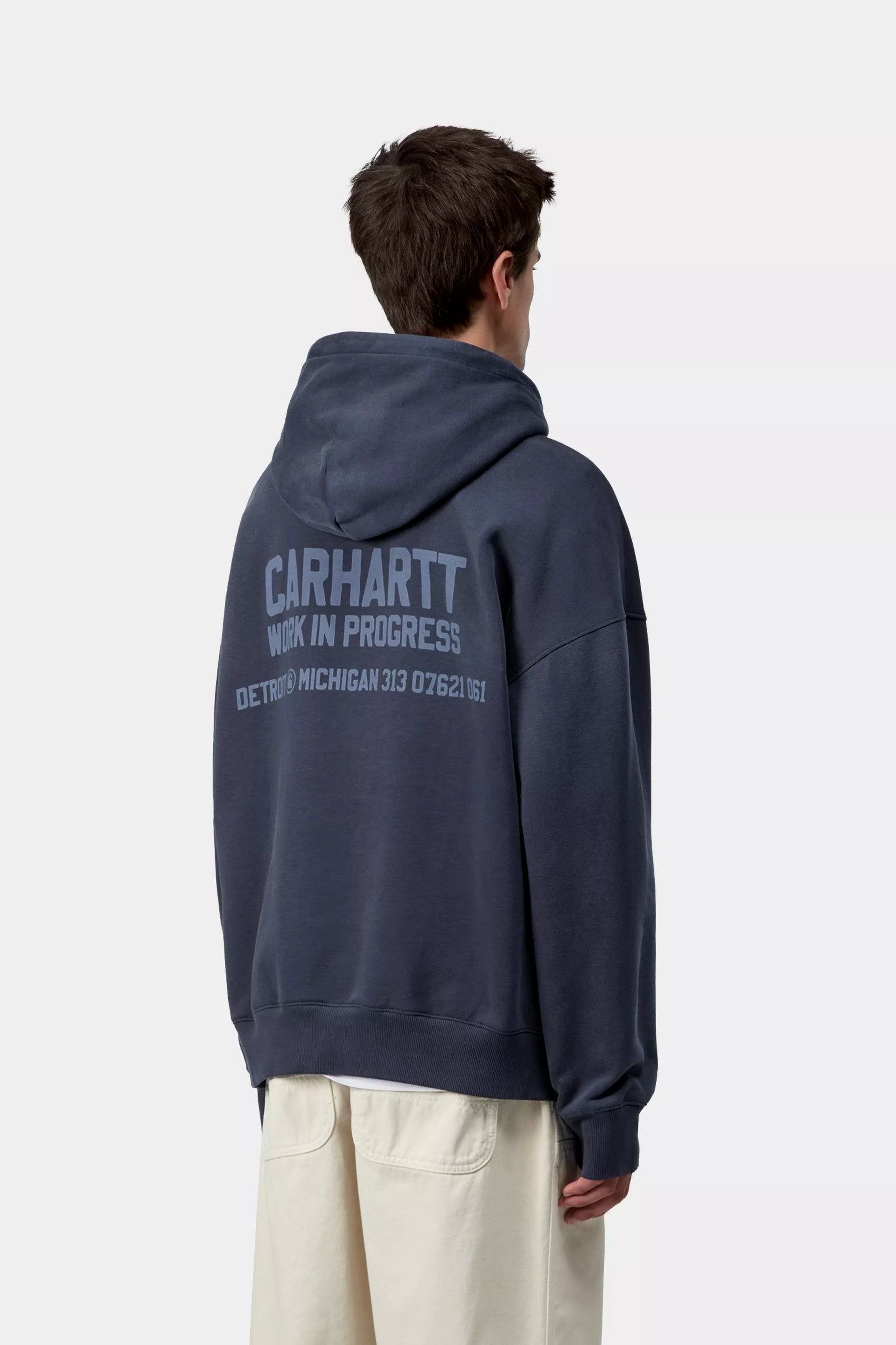 The Hooded Distance Sweatshirt is made in a boxy loose fit from heavyweight cotton jersey with an unbrushed, tactile loopback construction. The style features an adjustable hood and a kangaroo pocket. Graphic prints appear on the front and back.